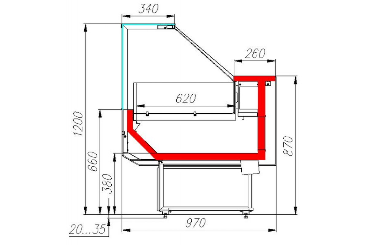 - глубина выкладки — 620 мм;