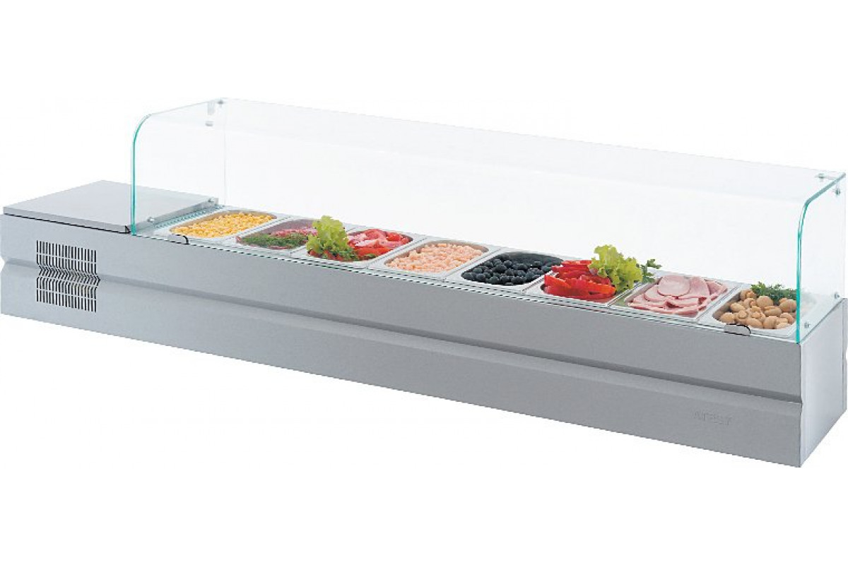 Холодильная витрина ATESY Болоньезе-8 используется на предприятиях общественного питания и торговли для кратковременного хранения и демонстрации компонентов пиццы (топпингов). Модель оснащена встроенным холодильным агрегатом, верхняя крышка которого вы
