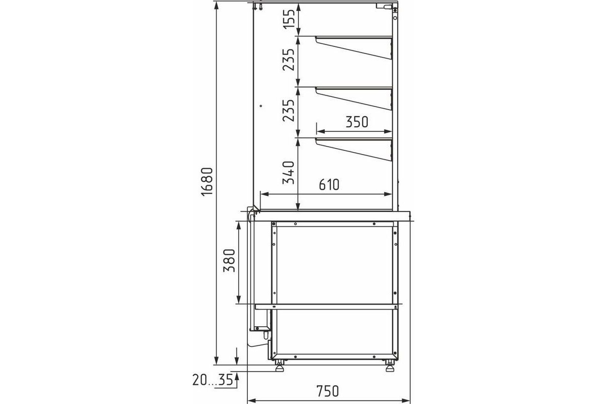 - нижняя поверхность камеры – базовая полка глубиной 610 мм;
