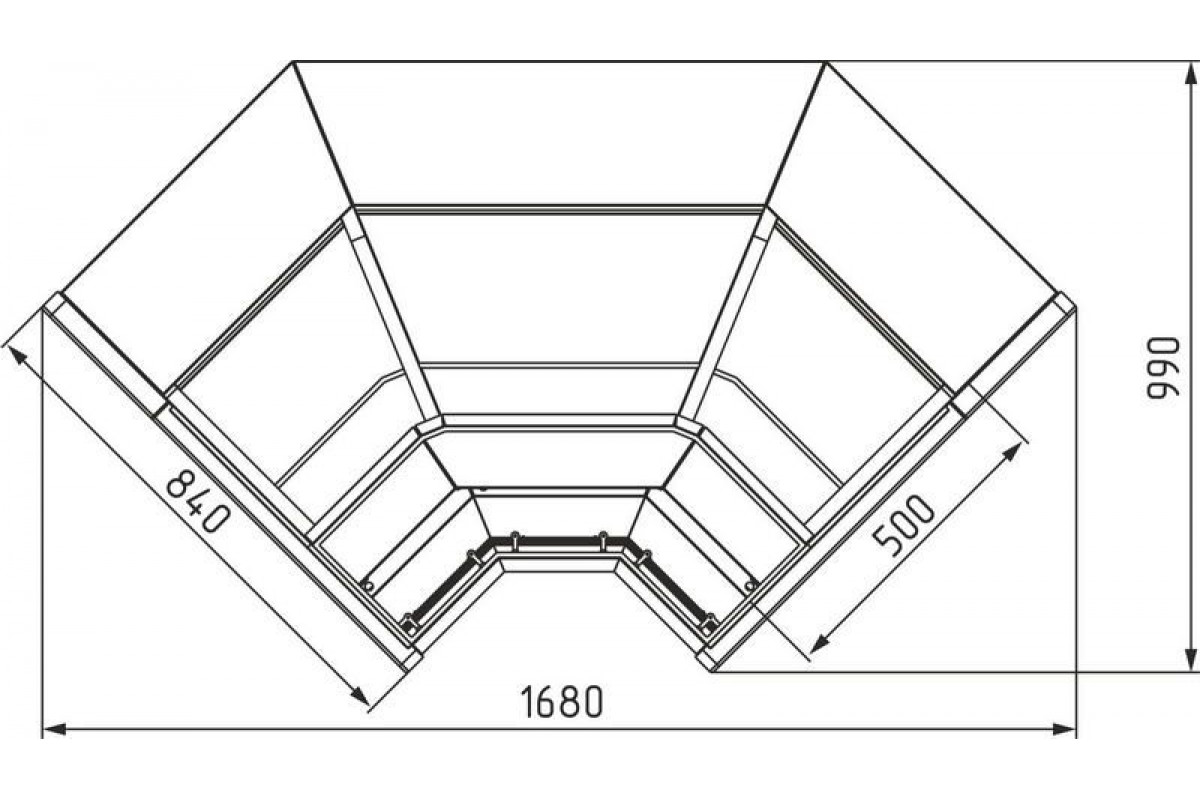 Нейтральная витрина Сarboma Borneo КС80 N-6 (внутренний угол 90) – специальная конфигурация витрины, предназначенная для соединения ряда витрин под углом 90º для установки по внутреннему периметру помещения. Предназначена для выкладки кондитерских/хлебобулочных изделий.