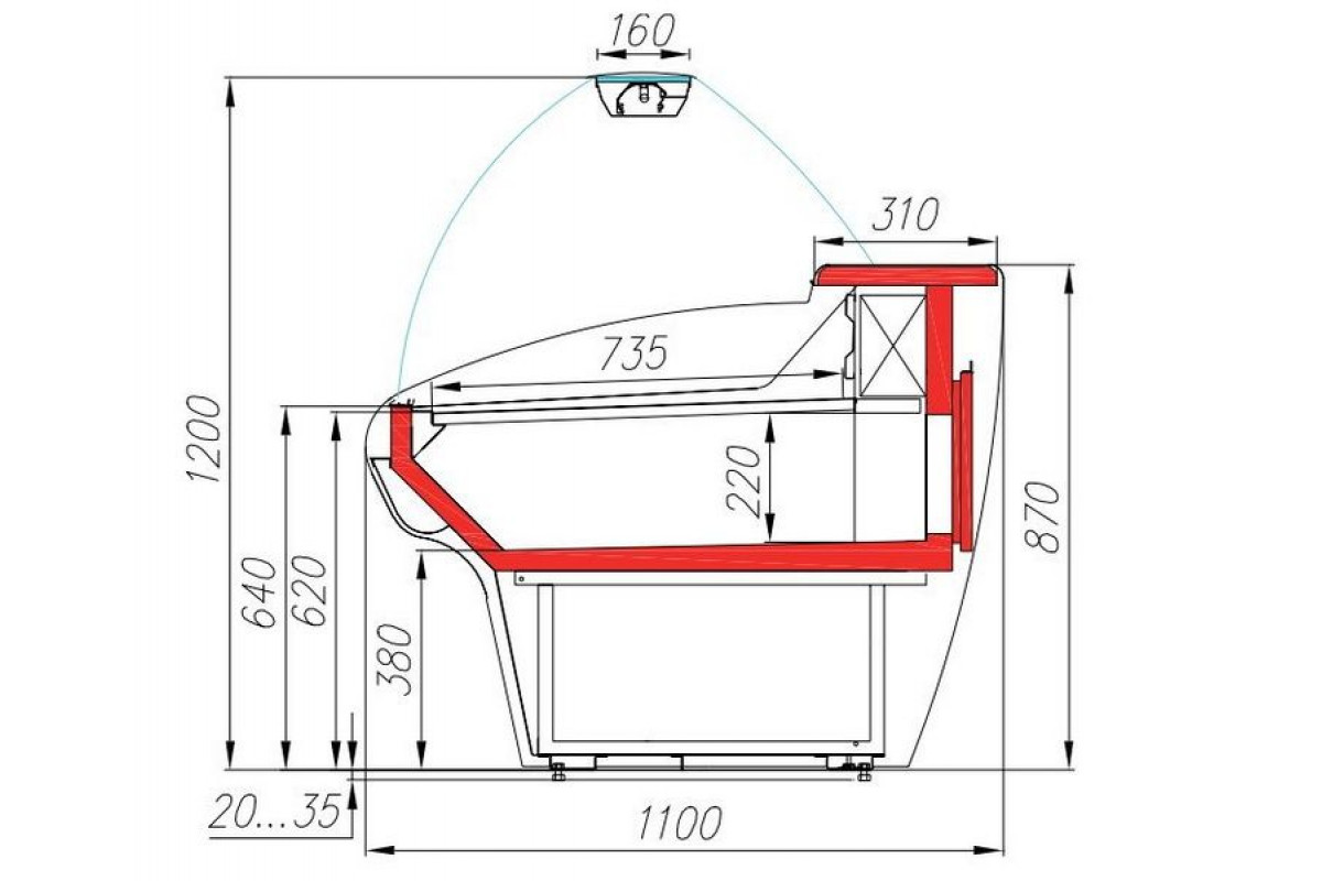 - 2х ступенчатые поддоны для выкладки. Общая высота поддона -120 мм, общая глубина-480 мм.